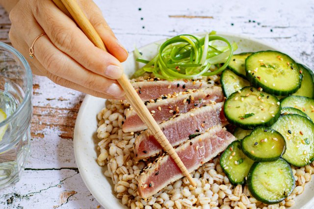 Tuna and other fatty fish like salmon contain omega-3 fatty acids, which promote the release of serotonin, act as anti-inflammatories, and may help mitigate depression in certain individuals. Tuna is also rich in vitamin B12.