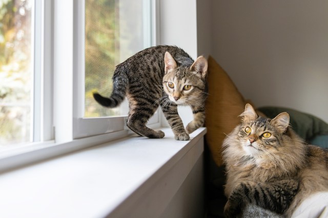 Herding cats was not an occupation I envisioned for myself when I daydreamed as a kid, but when you have more than one feline, you’ll do a lot of herding. You need tools to get the job done. I use treats to get two of my adolescent cats into the aforementioned spare room at bedtime. It may sound like an evil trick, but it works. All three of my cats love Blue Buffalo’s Bursts crunchy cat treats, but my blind cat — who has a bit of a halitosis problem — is encouraged to eat Wellness Whimzee’s natural dental treats because they promote better-smelling breath. If you’re adopting a third into the group, you’ll want to become accustomed to everyone’s favorite snack. Be it simply to treat them whenever you want to show extra love, or if you need to redirect any behavior as they get used to each other.