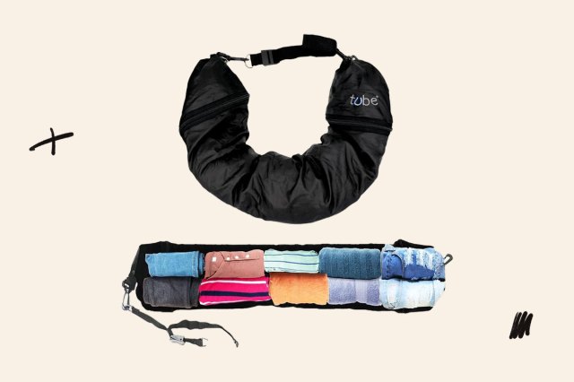 Neck pillows are excellent for long car, train, or plane journeys. This particular one unzips so it can be stuffed with rolled-up clothes — that means less clothing needs a spot in your bag whether you need to free up space for something else or make the airline weight requirements Without being stuffed with clothes, the neck pillow flattens out for easy storing.